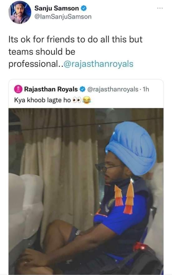ඒ රාජස්ථාන් රෝයල්ස් කණ්ඩායමේ සමාජ මාධ්‍ය ගිණුම් පරිපාලක විසින් රාජස්ථාන් රෝයල්ස් නායක Sanju samson ගේ ඡායාරූපයක් පළ කිරීම සම්බන්ධව ඇතිවූ අමනාපයක් හේතුවෙනි.