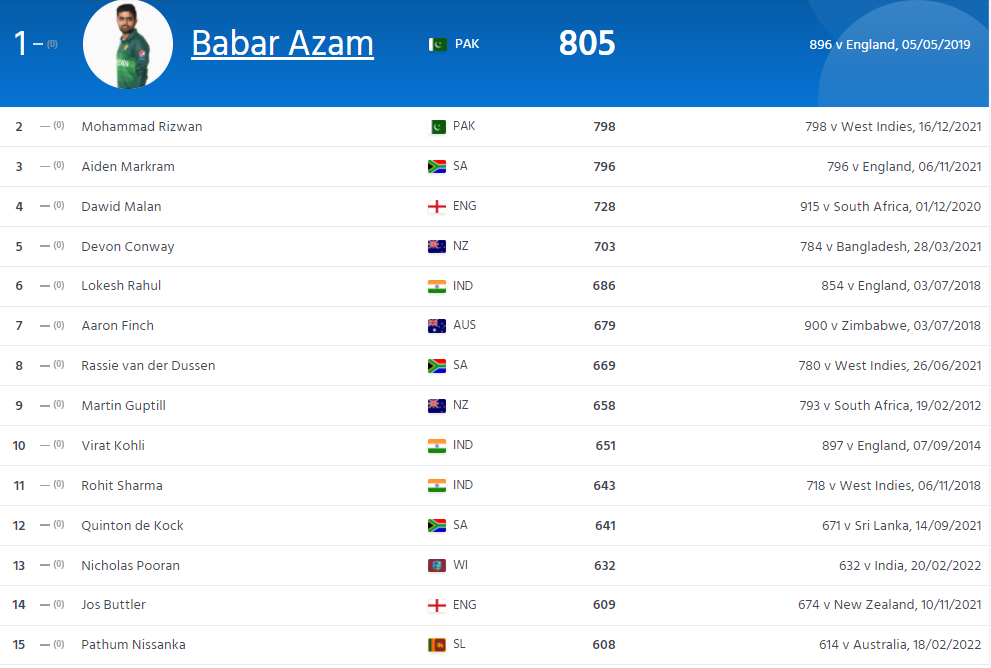 අන්තර්ජාතික ක්රිකට් කවුන්සලය විසින් නිවේදනය කරන ලද නවතම ශ්රේණිගත කිරීම පහතින්,