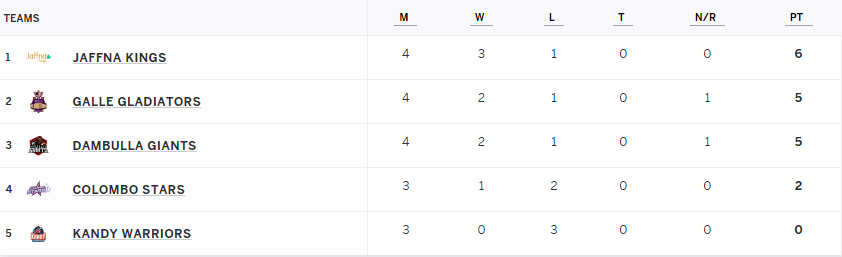 මෙම ජයග්රහණය සමගින් ප්රසාද ලකුණු සටහනේද ප්රථම ස්ථානයට පැමිණීමට Jaffna Kings සමත්වුනා.