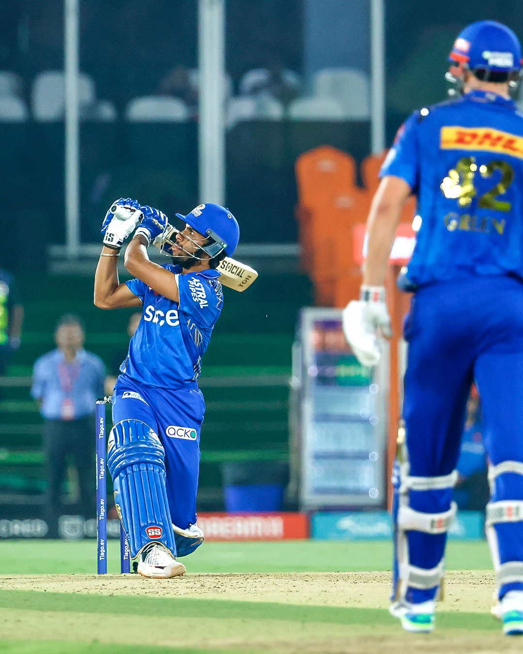 ප්රථමයෙන් පන්දුවට පහර දුන් මුම්බායි කණ්ඩායම පන්දුවාර 20 දි කඩුලු 5කට ලකුණු 192ක් ලබා ගත්තා. එහිදි කැමරන් ග්රීන් පන්දු 40කින් නොදැවි ලකුණු 64ක් ද, ඉශන් කිශන් පන්දු 31කින් ලකුණු 38ක් හා ප්රවේගකාරි ඉනිමක් ක්රීඩා කල තිලක් වර්මා පන්දු 17කින් ලකුණු 37ක් ද ලබා ගත්තා.