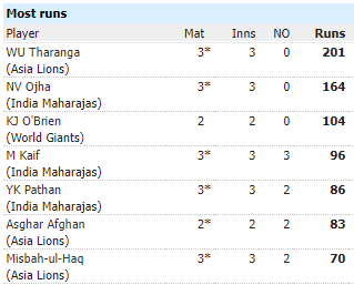 Asia Lions කණ්ඩායමේ පිතිකරණ ශක්තිය උපුල් තරංග වටා ගොඩ නැගී ඇති අතර ඔහු India Maharajas කණ්ඩායම සමග පැවති ප්රථම තරගයේදී ලකුණු 66ක් රැස් කළ අතර World Giants කණ්ඩායම සමග පැවැති තරගයේදී ලකුණු 72ක් ද ඔහු සභබාගි වු තෙවන තරගය වන India maharajas සමඟ පැවැත්වෙන තරගයේදී ලකුණු 72ක් ද රැස් කිරීමට සමත් වුණා.