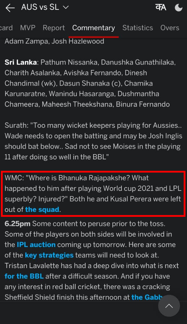 එම පැනය EspnCricinfo Commentary Box එකෙහි සඳහන් වුණේ පහත ආකාරයටයි.